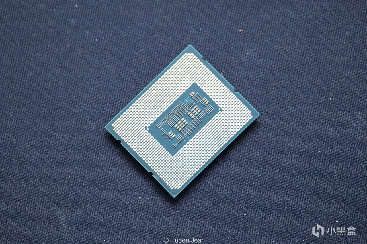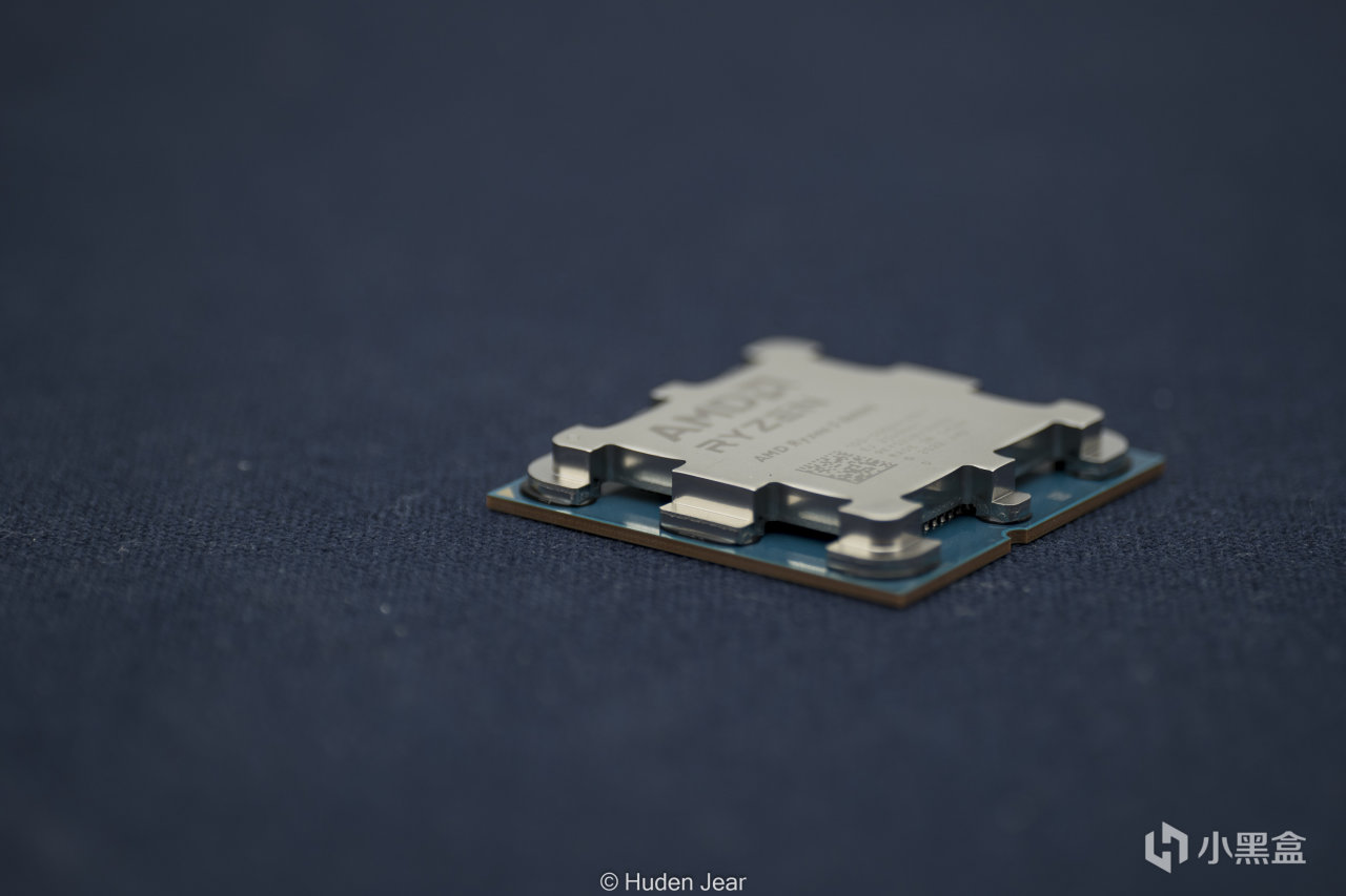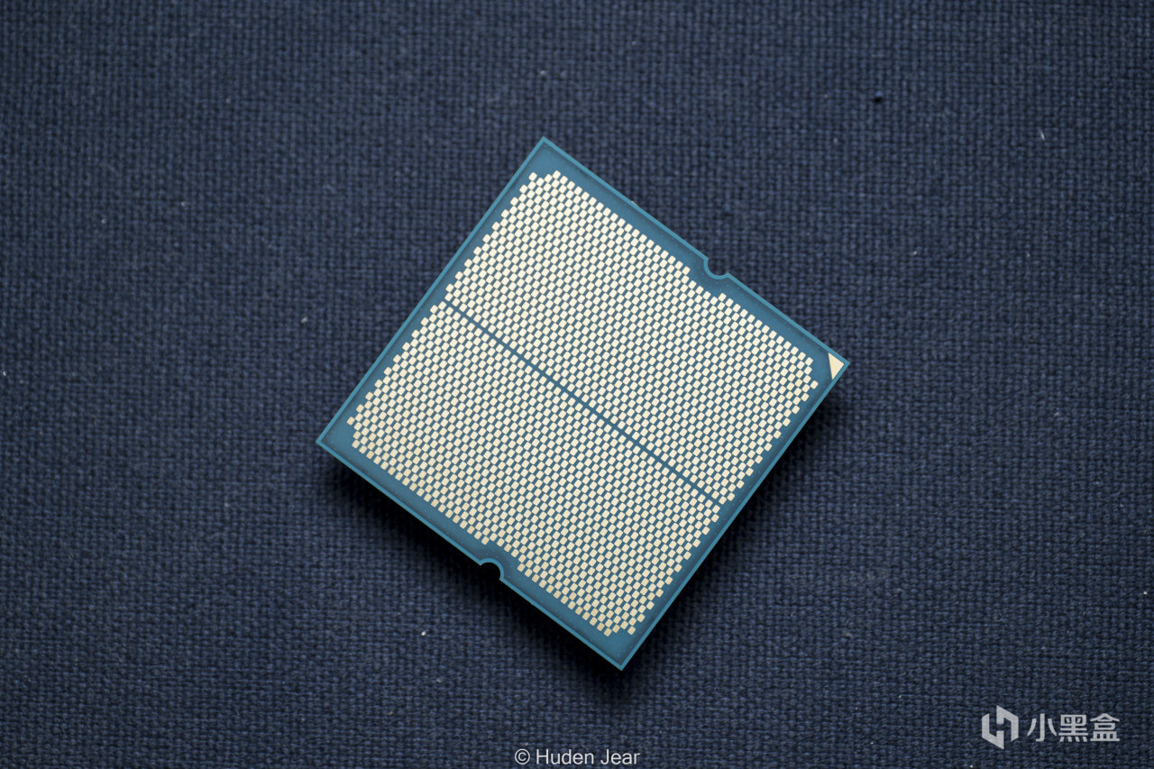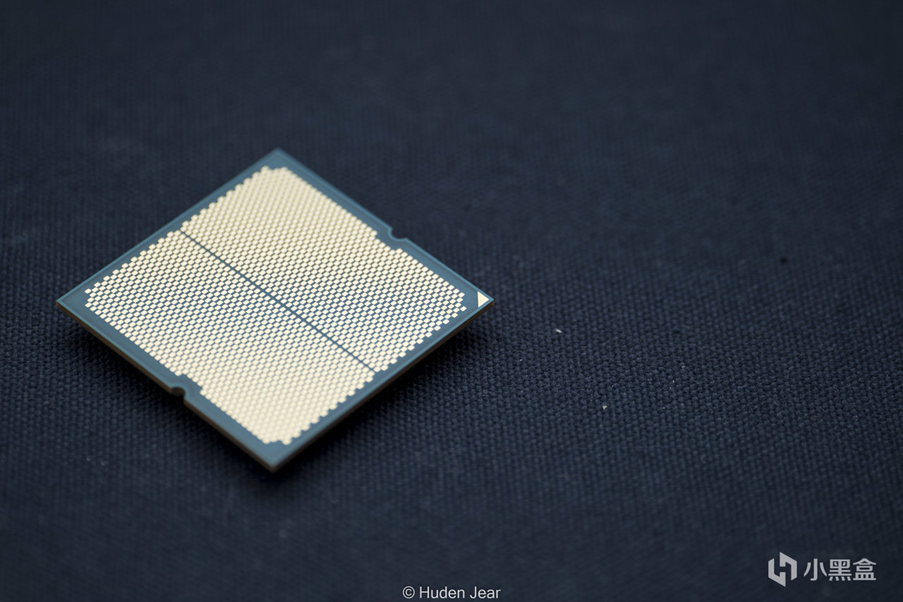 8600G使用的也是LGA1718接口,并且上盖保持了一样的架空设计,这就让这颗APU的电容可以很好地保护在顶盖下方不受外力影响,也避免在底部的电容被误操作破坏,我觉得是不错的设计。正反两面都有一个铜色的小三角,虽然APU的PCB已经有防呆设计了,这个小三角还是能进一步明确安装方向