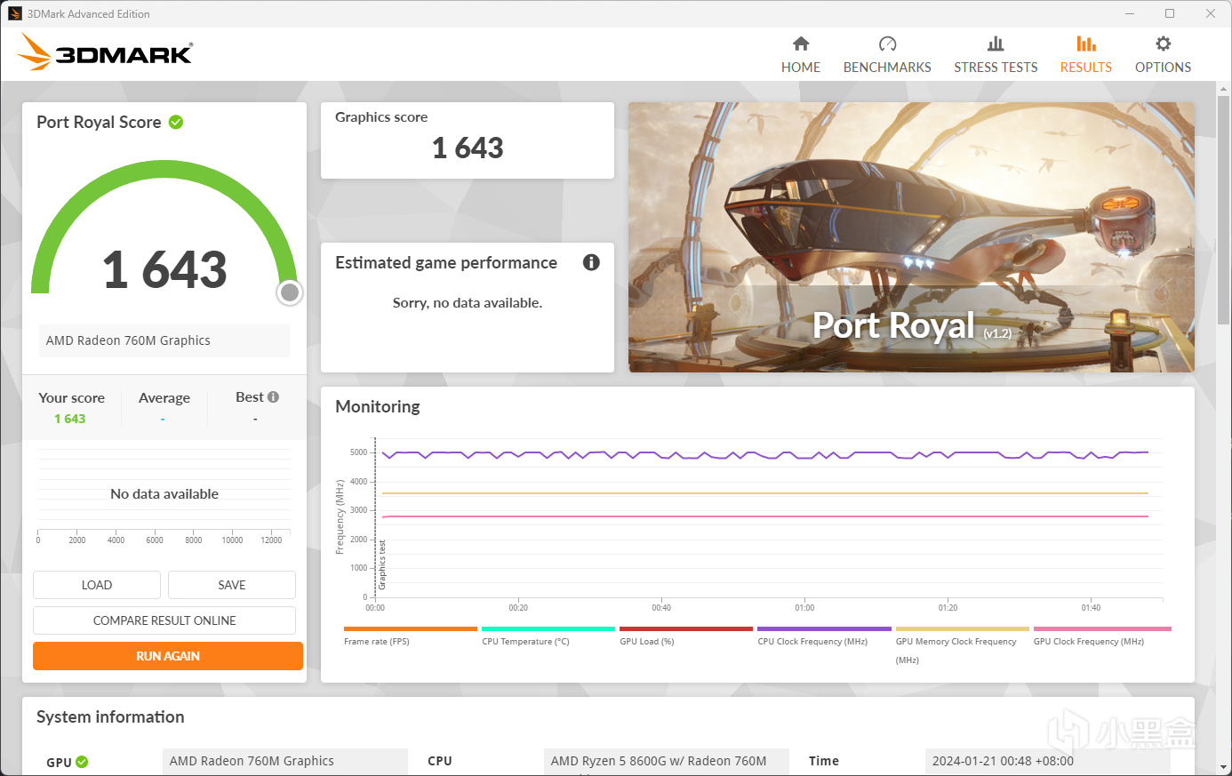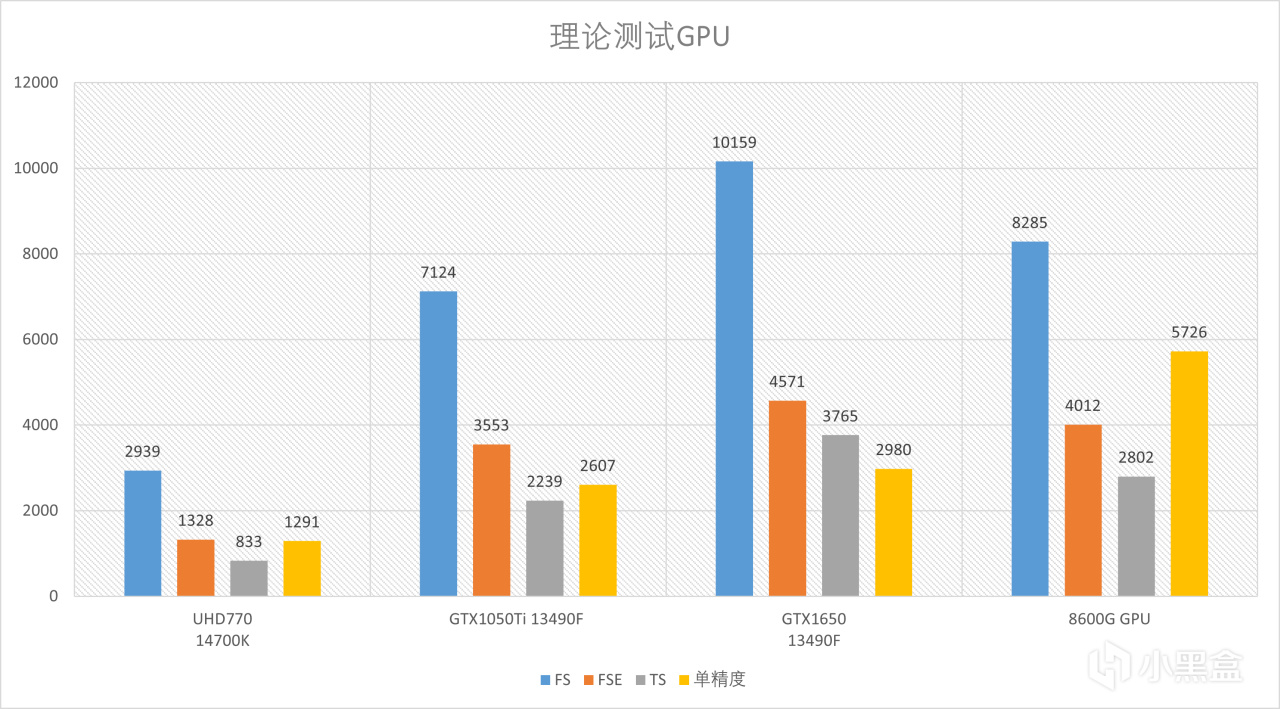 下面是GPU的理论测试,使用3DMark和AIDA64精度计算,从结果来看760M是可以超越GTX1650力压GTX1050Ti的,同时在单精度方面也有几乎翻倍的实力,8600G这个核显的水准从后面测试看确实都能玩3A了,具有极其离谱的实力