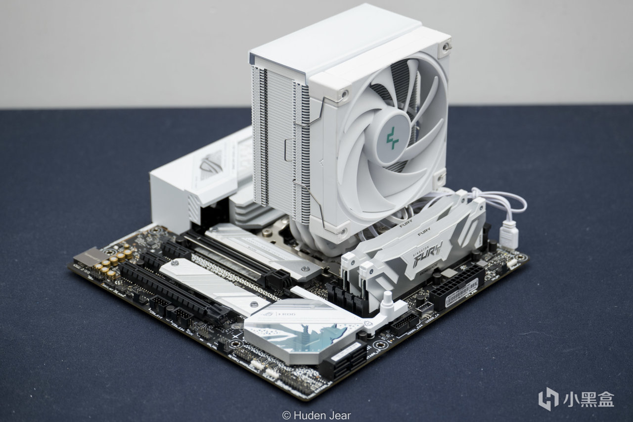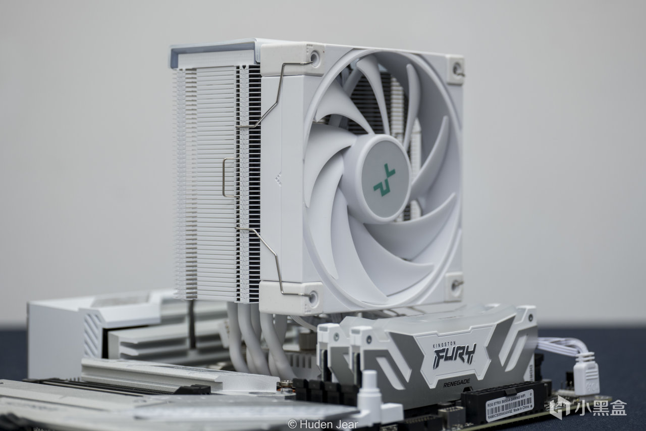 下面是一些参测的硬件,首先是散热,新买的九州风神AK500S,这个散热做了全白处理,非常适合配白色的主板,我最近买的两块主板都是白色,所以也买了这散热。标称散热240w,而且是全体白色没有死角,确实很不错
