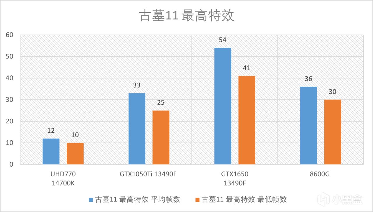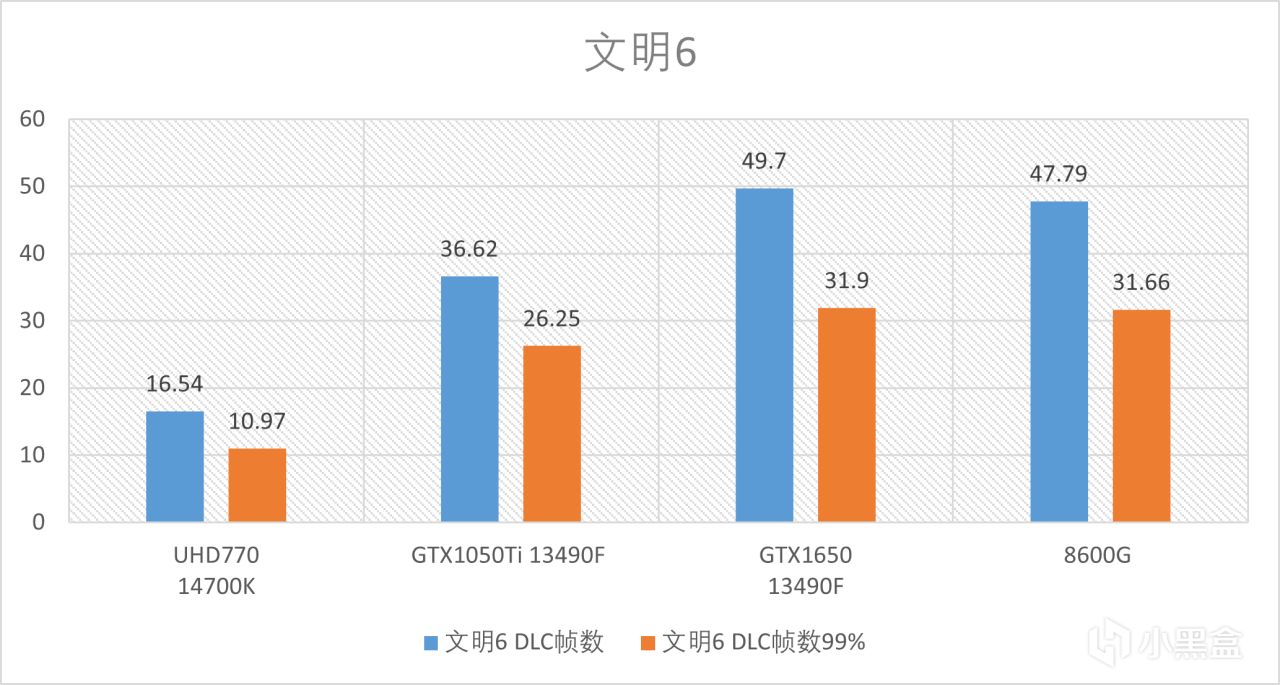 首先是文明6的测试,8600G这个性能基本赶上GTX1650了,对1050Ti这种独显则能秒杀,至于intel核显在其面前完全不值一提