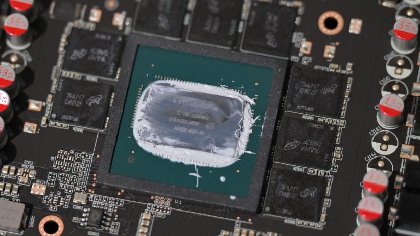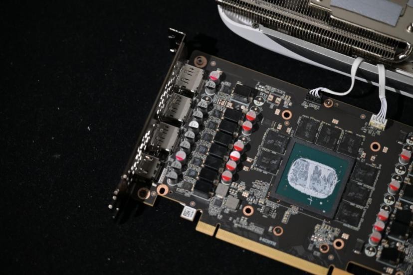 核心是英伟达AD103-400-A1芯片,周围环绕的是美光出品的3WU47 GDDR6 2GB显存芯片。
