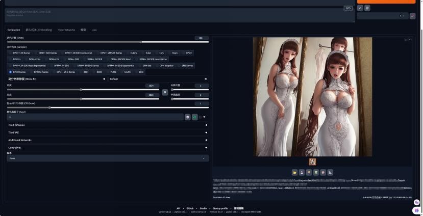 生成式AI对显存要求极高,那么RTX 4080 SUPER和普通8G显存的游戏卡差距到底有多大呢,这里我用索泰RTX4060 Ti 8G 欧泊白 OC和索泰RTX 4080 SUPER-16GB TRINITY OC 月白进行对比,SD模型采用JinXiaoMix,采样方式为DPM2 Karras,生成一张1024*1024、100次迭代的AI图像,8GB的4060Ti花了92秒,而4080 SUPER仅需37秒,速度比4060Ti快了2倍。