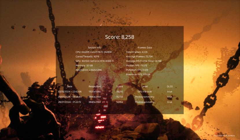 UE5也是目前被影视、游戏众多领域采用的新兴引擎,基于光照烘焙技术、超高分辨率纹理、跨平台和可移植性,这款引擎成为了最新3A大作的开发首选,也会成为未来拍摄科幻电影的可选项。UE5支持NVIDIA RTX实时光线追踪技术和NVIDIA DLSS加速渲染,在EzBench中,2K下平均帧数达到了72帧,相较3080Ti的39帧高了近一倍。