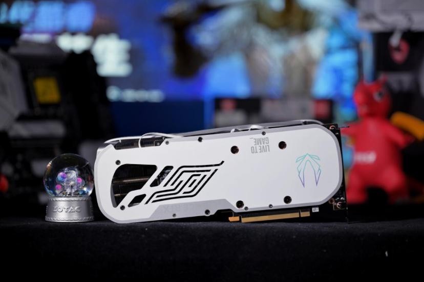 白色背板为金属材质,覆盖了显卡的整个全长,保留了索泰的AMP信仰标识。宽度为120mm,并留有穿透气孔。