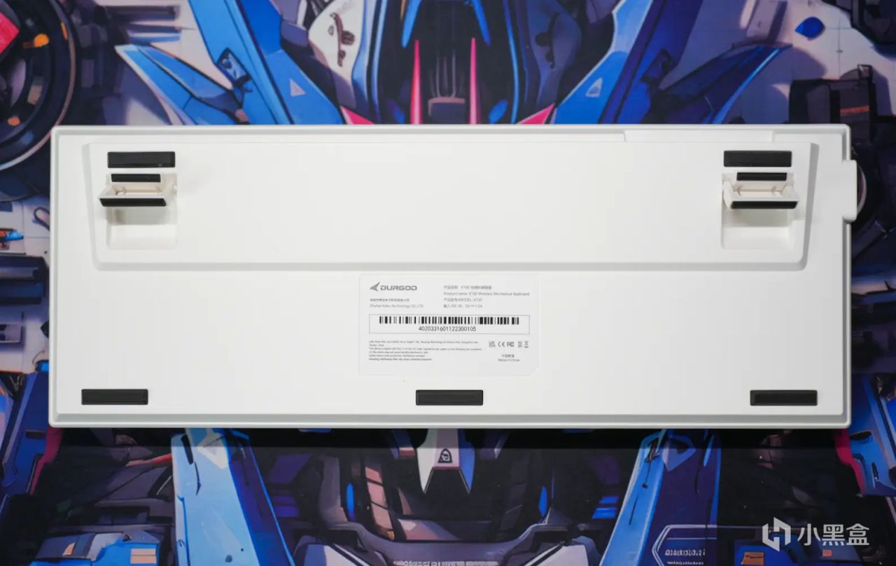杜伽K100的底部设计也非常纯粹,纯白的外壳四周都不由黑色的防滑垫,并且杜伽K100还搭载了两段式的脚垫支撑,细节方面把控的非常不错。