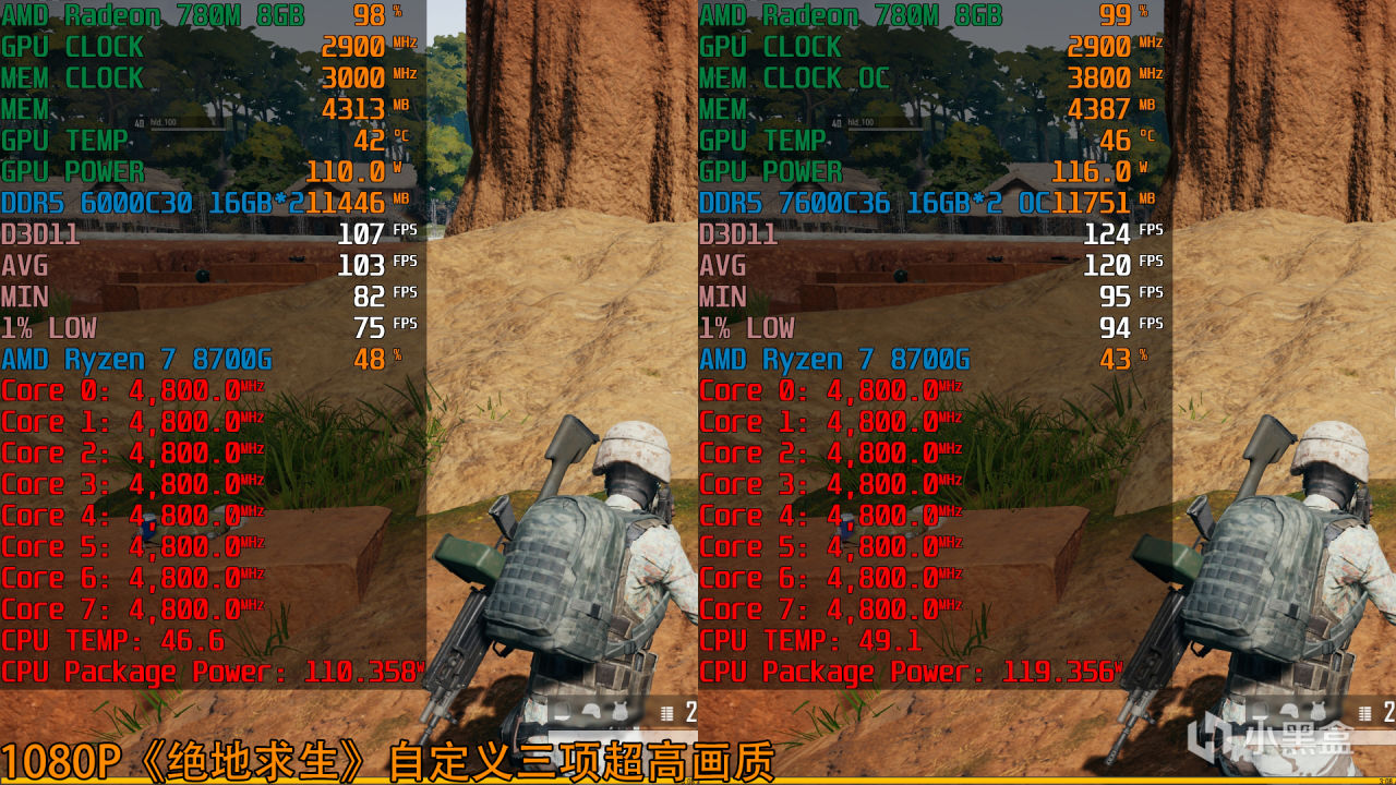 銳龍7 8700G(Radeon 780M)+DDR5 6000C30 1:1平均幀數103fps