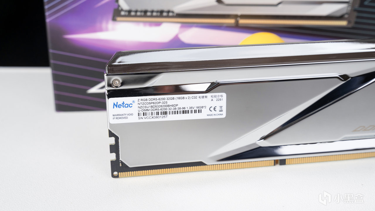 另一面貼着產品標籤,標註了SN碼和相關參數,支持XMP 3.0超頻配置,開啓後達成DDR5 6200CL32-38-38-96 & 1.35V,時序調教屬於常見組合,其實更重要是它的超頻潛力,建議動手能力強的玩家都手動超頻一下。