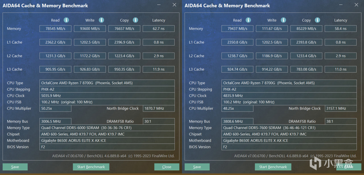 但是,銳龍8000G由於屬於APU類型,它內置的核顯性能和內存是息息相關,這裏就簡簡單單把內存超頻至DDR5 7600C36-46-46-121(屬於偏向EXPO的保守時序),同時開啓技嘉的兩項D5黑科技:High Bandwidth(高帶寬)和Low Latency(低延遲)技術,下面我們來跑跑測試看吧。