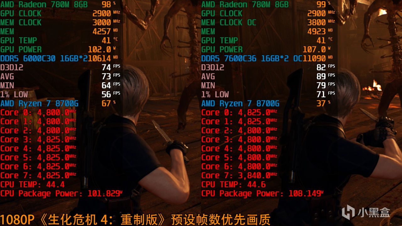 銳龍7 8700G(Radeon 780M)+DDR5 6000C30 1:1平均幀數73fps