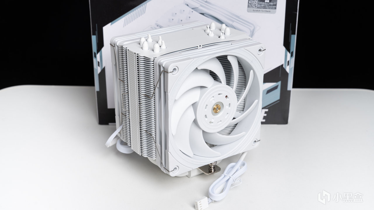 本次測試的CPU散熱器來自利民U120EX REV.4白色款,定位是單塔風冷旗艦,具有空氣解構學鰭片設計,整體高度只有157MM,並且這款散熱器擁有“歪脖子”的兼容處理,爲的就是塞下兩枚120mm風扇,這想法可以說很瘋狂。