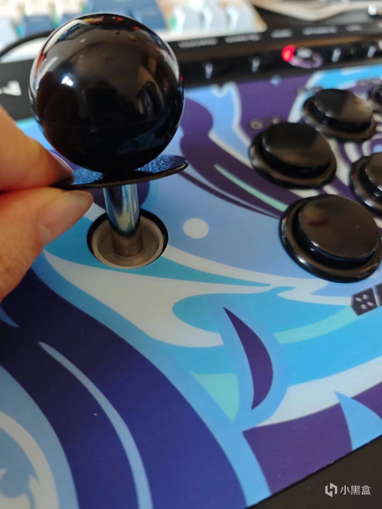 摇杆是非常经典的圆档摇杆,摇杆下面还有一个环,应该是放东西掉进去和防磨作用的吧,跟街机厅的摇杆一模一样。