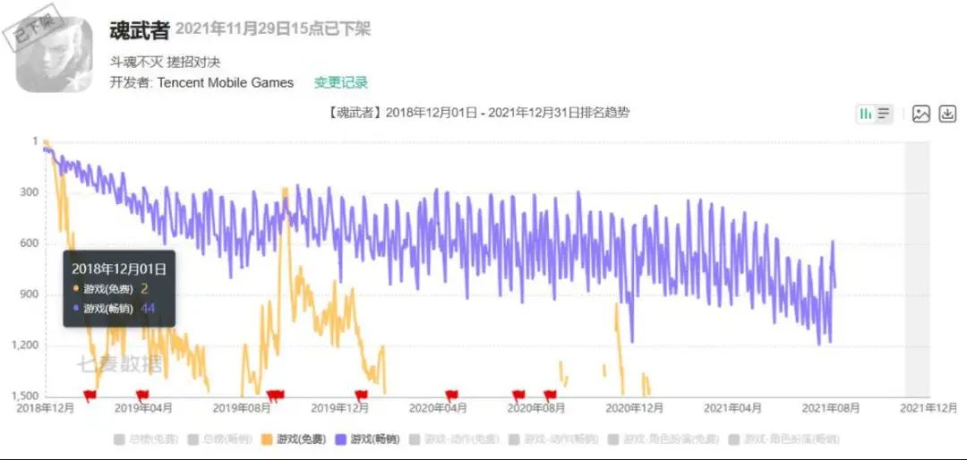 然而《魂武者》最终没能成为公司新的里程碑。游戏在2018年11月上线,虽然在上线首日曾登顶iOS免费榜,但畅销榜排名最高仅到达44名,还远远称不上爆款,况且长线运营情况也不容乐观。