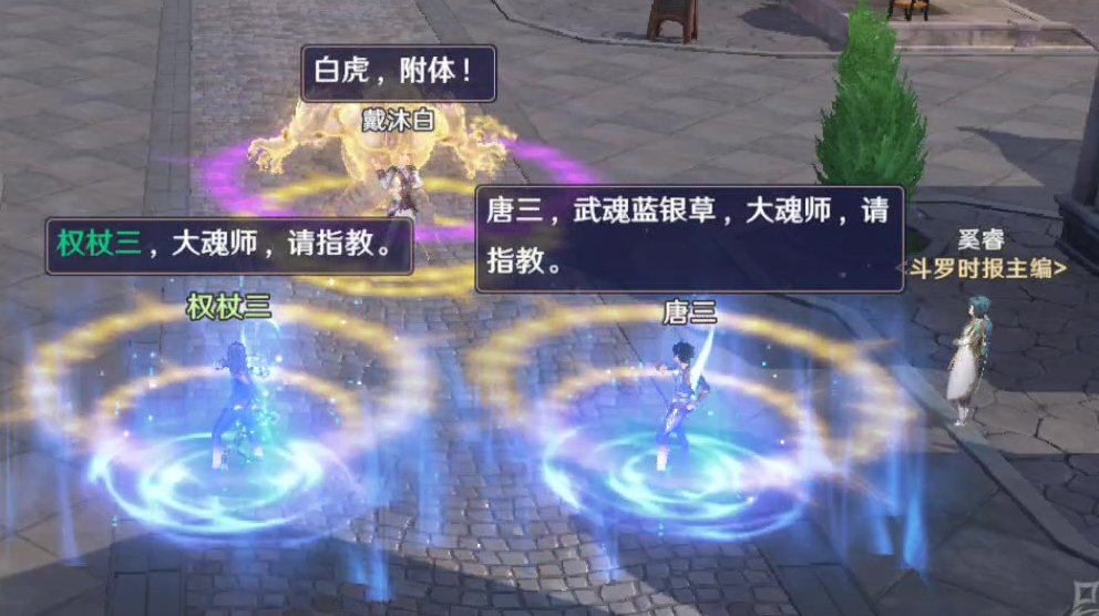 例如玩家在諾丁學院入學,並且身份與唐三一樣是工讀生,所以還需要參加到打掃校園的工作中;而在畢業後前往史萊克學院的路上又與戴沐白、馬紅俊等人不打不相識——遊戲還還原了原著中儀式感和代表性極強的,在戰鬥前亮出武魂和魂環的環節。
