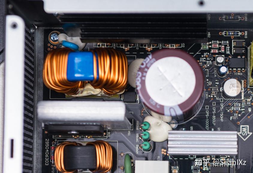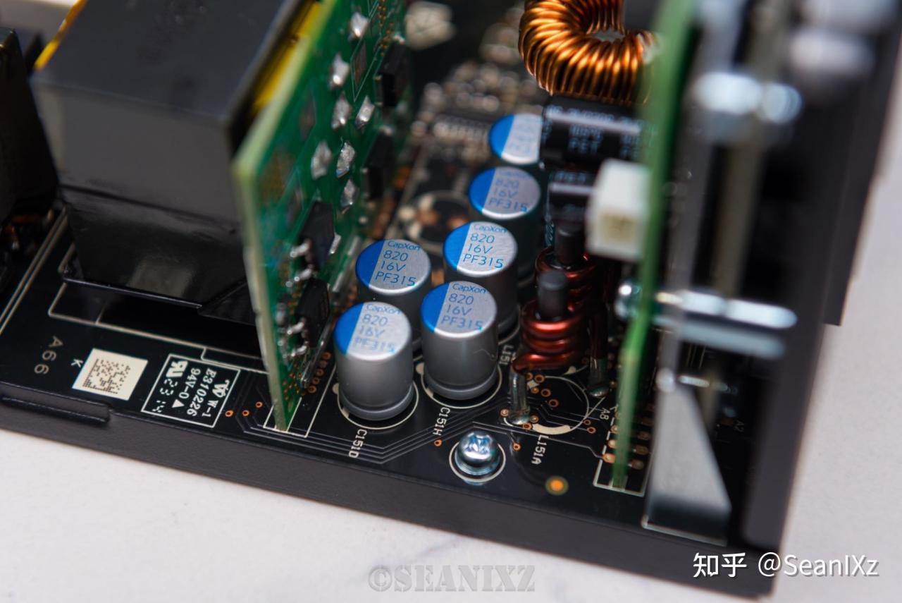 下面的固态电容是台湾丰宾820μf 16V PF315,也有两个空位,850W版本减掉了一些配置,如果是从1000W缩下来的话,用料其实也还算不错。