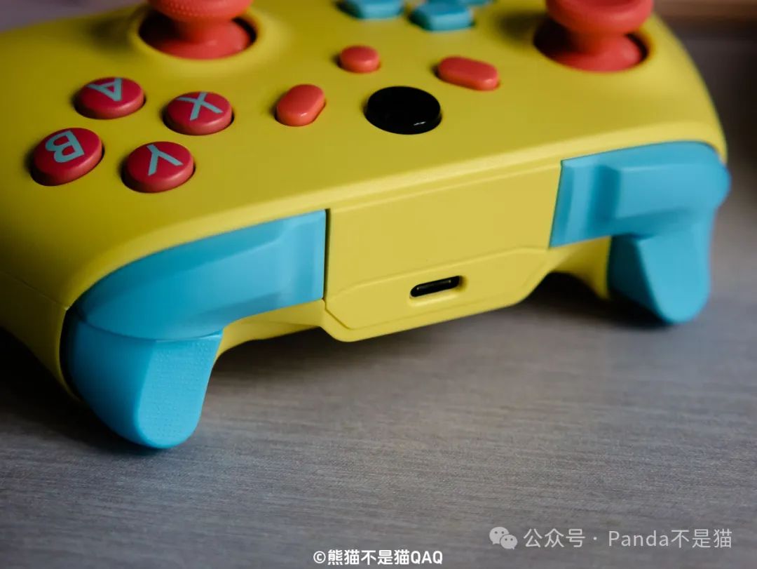 手柄支持多模连接,手柄的顶端配有一个带有亦狐logo的指示灯用于手柄状态展示,同时也支持多平台使用,能完美兼容Switch、PC、手机、电视以及各类win掌机。多模多平台也算是目前手柄的标配了,这样才能满足全平台的使用需求,毕竟如果想玩NS还要单独配一个手柄着实有点麻烦。(logo有点歪,不知道是个例还是故意为之,强迫症难受)