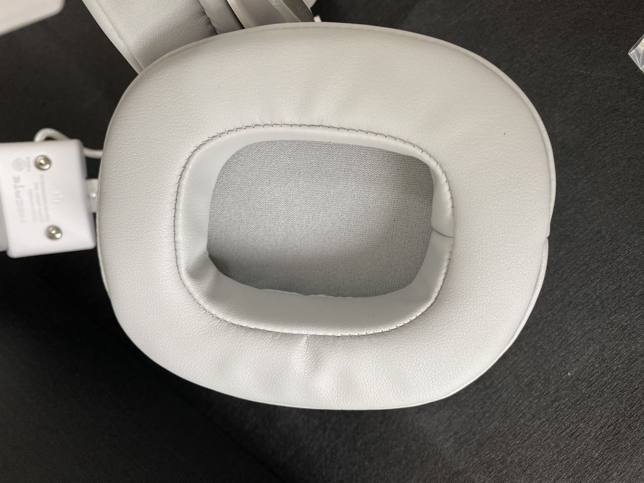 G5接触面的质感上面,不管是包覆耳朵的皮革还是头带的皮革都比较亲肤,不会有摩擦的感觉,佩戴也很紧实;而佩戴舒适度方面,正如上面所说,由于人体工学设计,头部整体佩戴并不夹头,并且头顶的头带也不会压迫;耳朵这边,即便是耳朵容易出汗或者在空调房的玩家,会稍微出点汗,总体舒适度也还凑合。