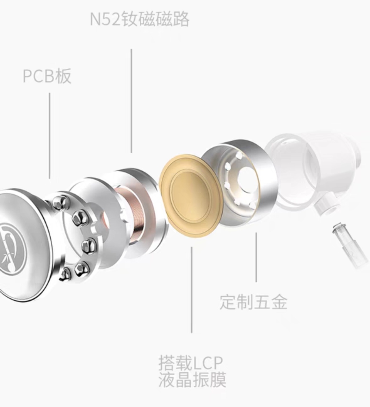 LCP液晶振膜CCAW大黑音圈/10mm外磁式高性能動圈單元/高純度無氧銅鍍銀線