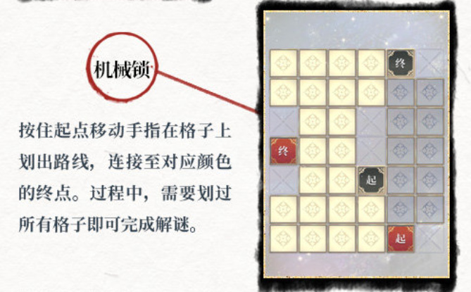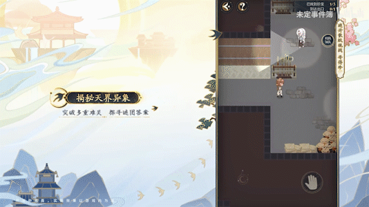 而在2022年1月「飞雪落红尘」古风主题活动中,未定在解谜小游戏里融入了天干地支、五行等要素,并加入了机械锁、玉盘锁这种经典机关,营造出在深山古宅中探秘的沉浸效果。