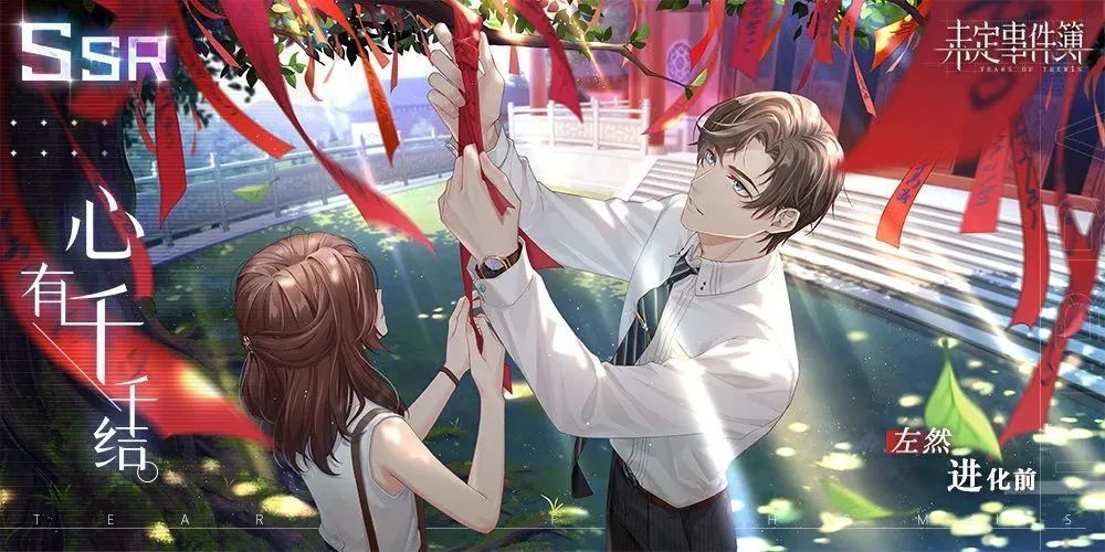 在左然的思绪中,紫藤树上挂着红绸缎,与他先前在思绪故事「心有千千结」「好愿成双」中,与玩家共同祈愿的场景,遥相呼应。