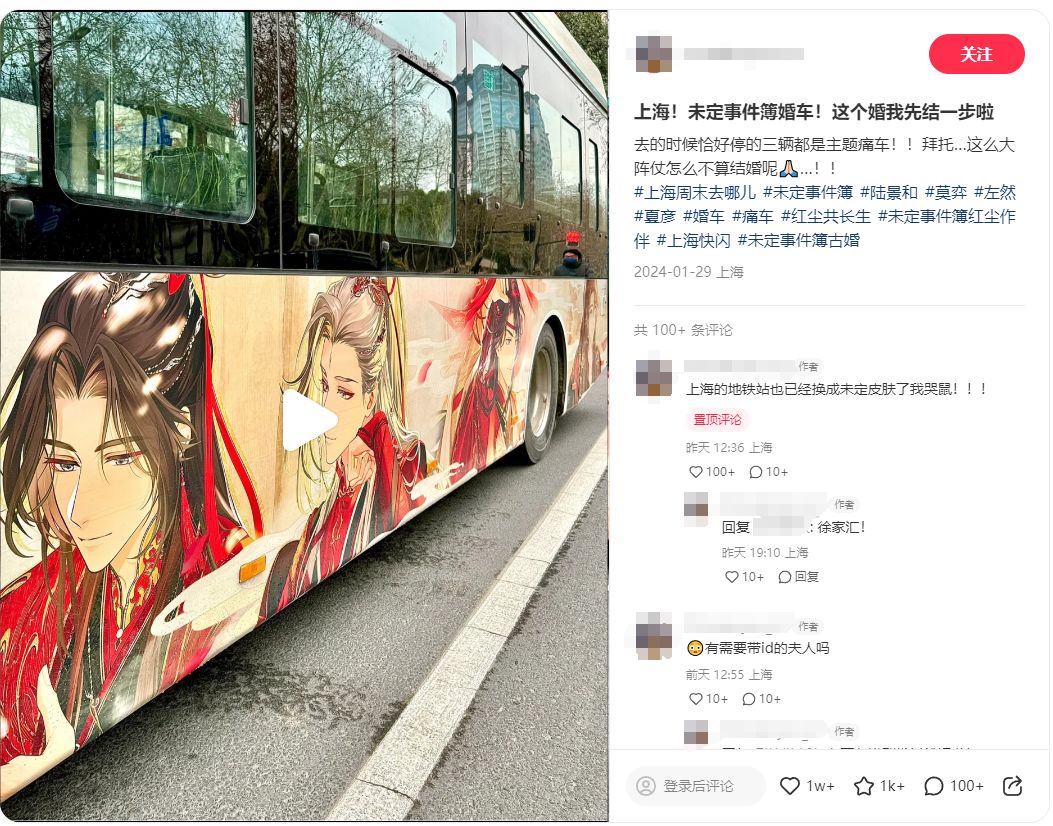 这些活动,也让「红尘共长生」的活动影响力突破了次元壁、扩散到了线下生活中——在小红书、微博、抖音、B站等社媒平台上,你可以看到不少玩家的实时repo,感叹自己与心爱的他在现实中相见,打趣称“我们终于拥有了‘婚车’、‘婚房’“。