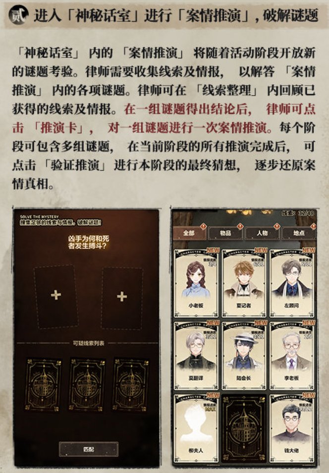 去年1月「故城黎明的回响」,活动玩法则做成了剧本杀的形式。玩家在关键节点的不同选择会导向不同结局,而要真正通关,则需要多次尝试,找对正确的分支路线。这与略显紧张刺激的活动剧情氛围有所呼应:各个势力明争暗斗,一个小小的线索、抉择就会影响大局。