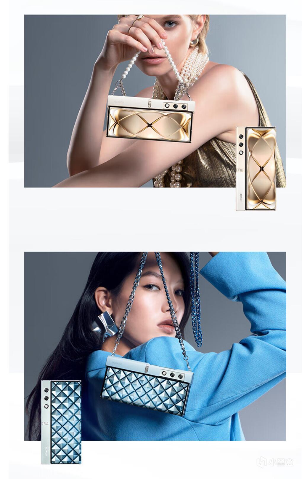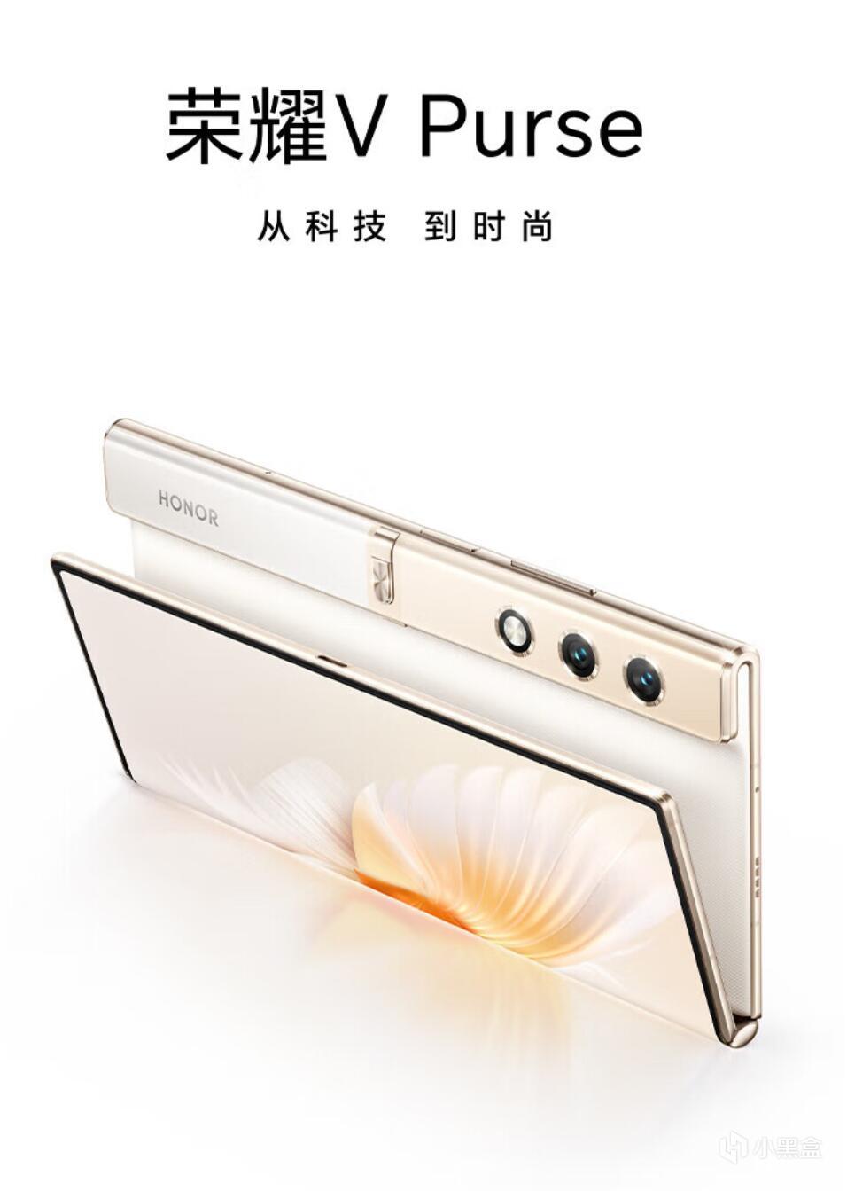 紧跟着Mate X5的低调发布,荣耀V Purse盛大发布了,这是这个清单里最特别的折叠屏手机,是原来华为Mate XS2的继任者(不愧是亲儿子),荣耀接手之后调整了定位,成为一款对妹子特攻机型,充分利用了反折屏的优势,极轻极薄,只有214g 8.6mm,完全是直板机水平,超越了所有正统大折叠,并且玩了个花活弄了个漂亮的息屏显示: