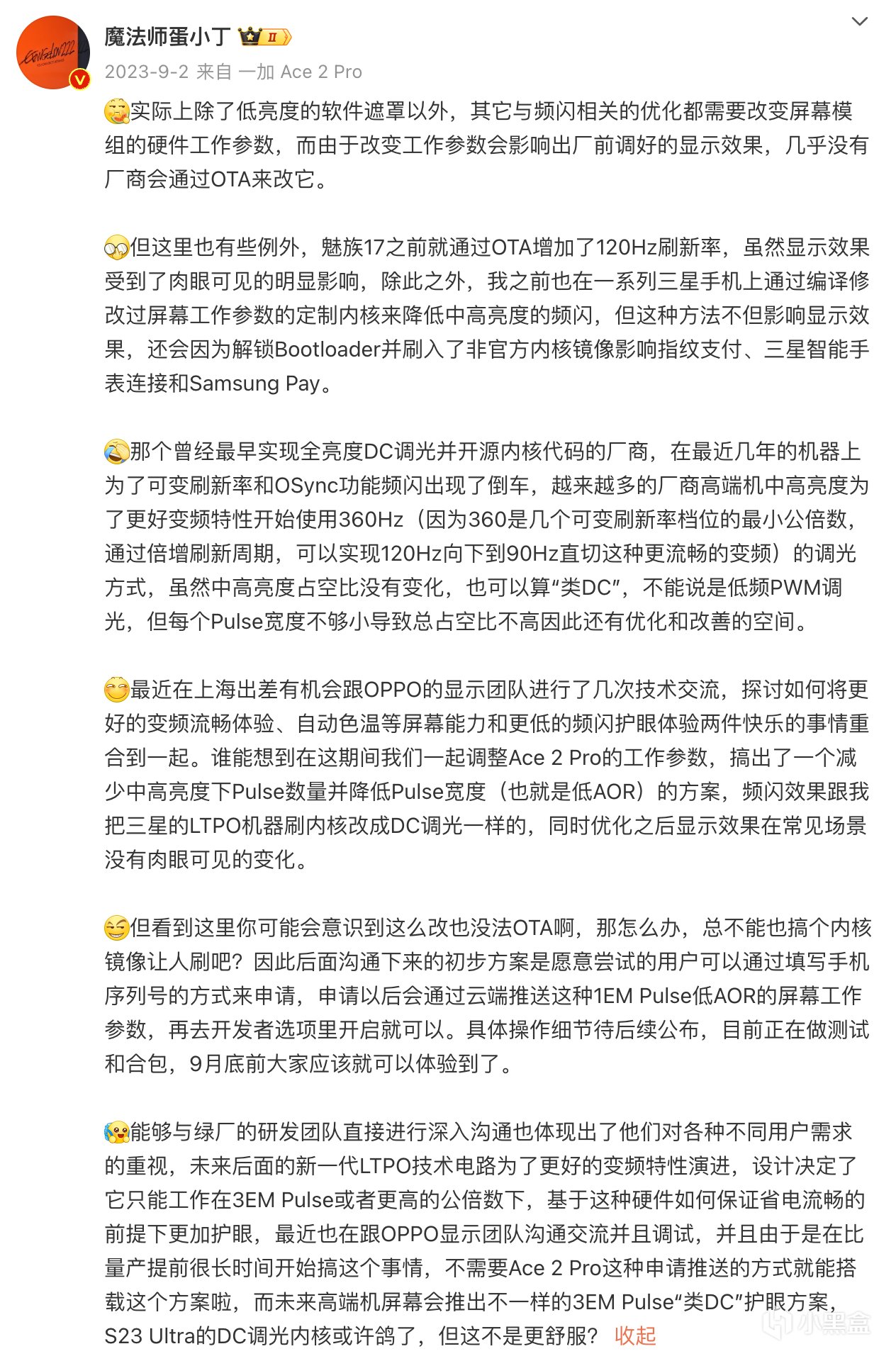 采用国际大厂屏幕的厂商能做的,也仅仅是原生提供一个类似博主“蛋小丁”给出的方案了,因为屏幕厂商不听话,也没辙。