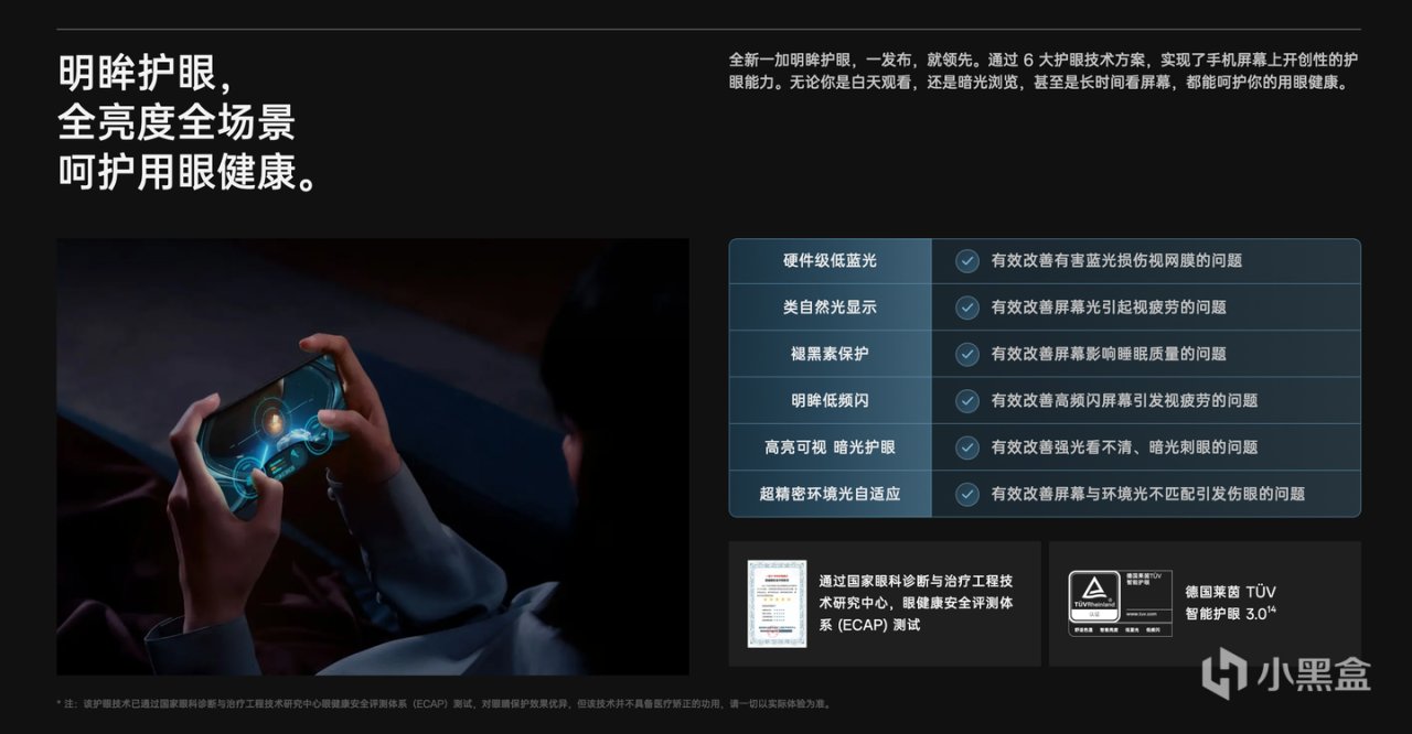 全链路护眼方案在愈发挑剔的消费者需求、国产屏幕厂商的鼎力支持下,国产手机厂商开始在这条国际大厂不关注的道路上狂卷狂奔……