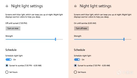 Windows 10 的 1703 版本开始,也加入了“夜灯”功能。