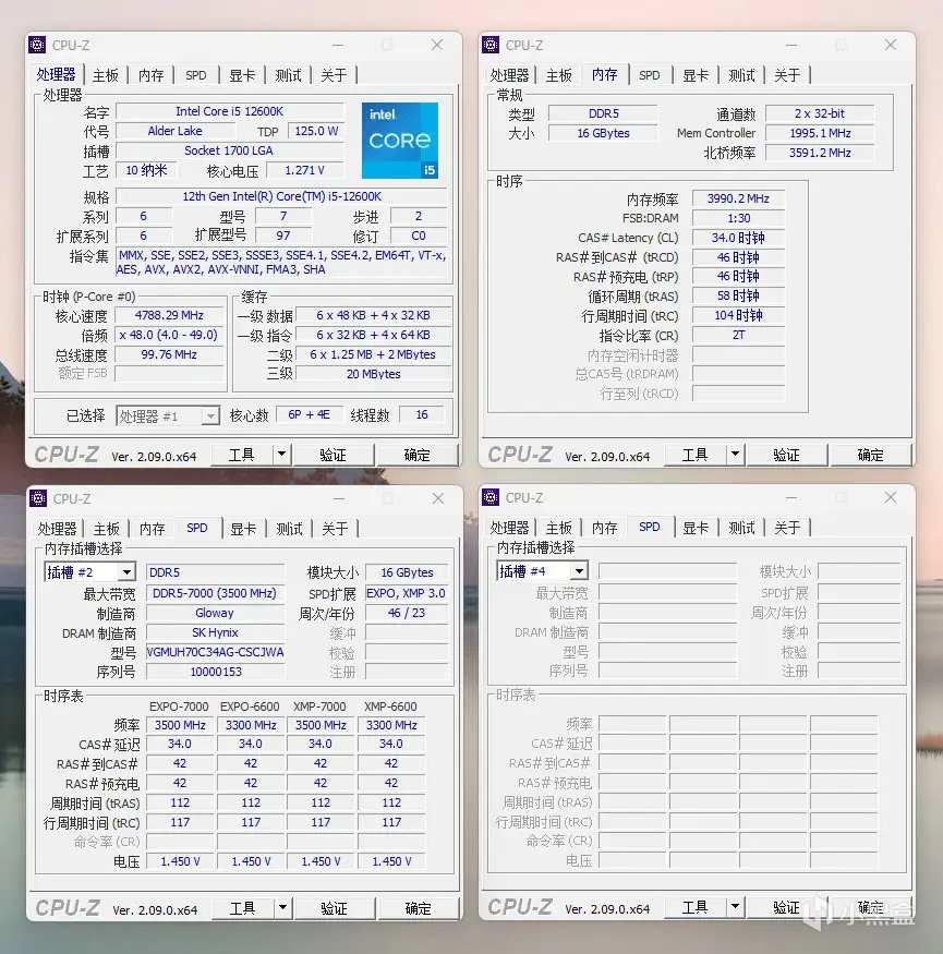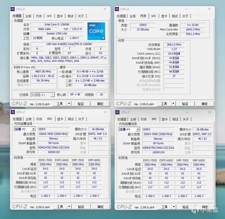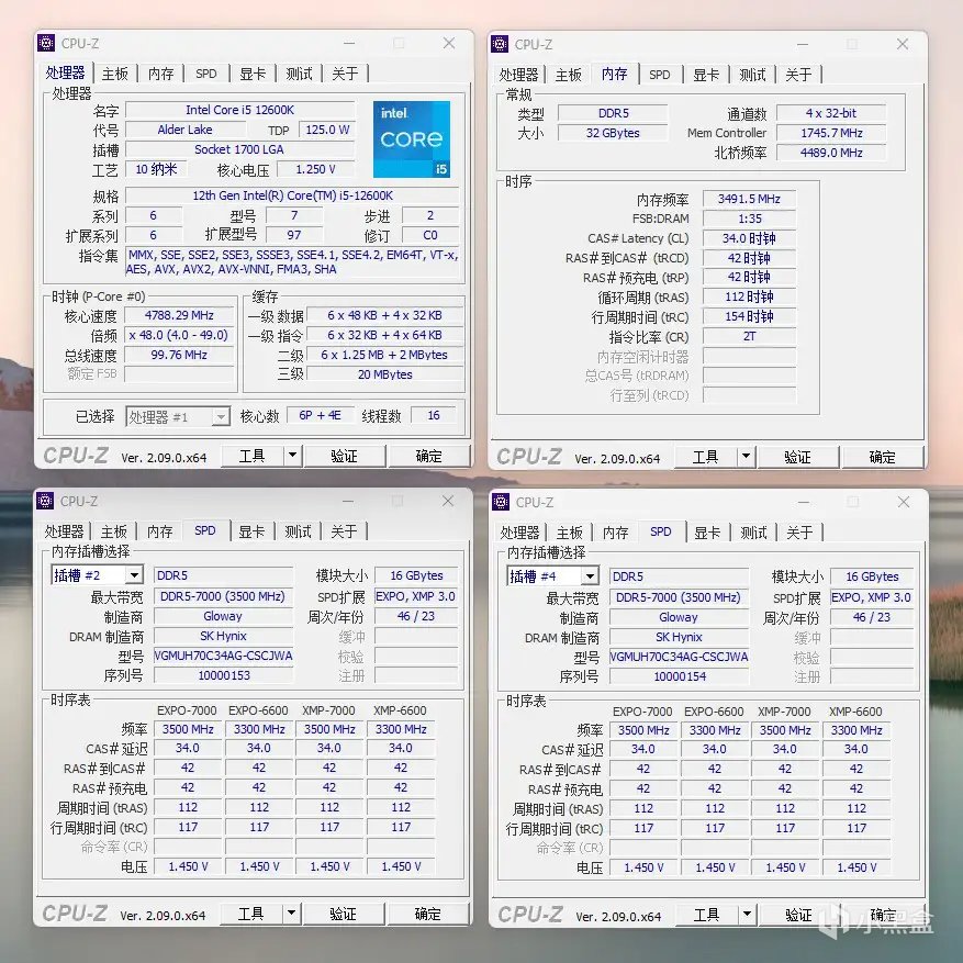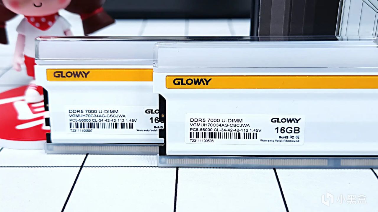 内存条上的贴纸显示,这款内存条每根容量为16GB,在CL-34-42-42-112,1.45V的时序和电压下,可以实现7000MHz的频率。