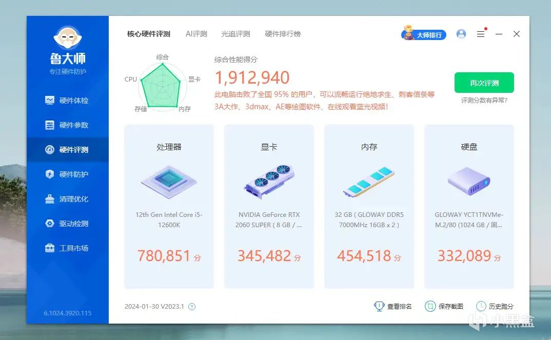 主盘:光威(Gloway)弈系列 2TB SSD固态硬盘(自封装长江存储颗粒)
