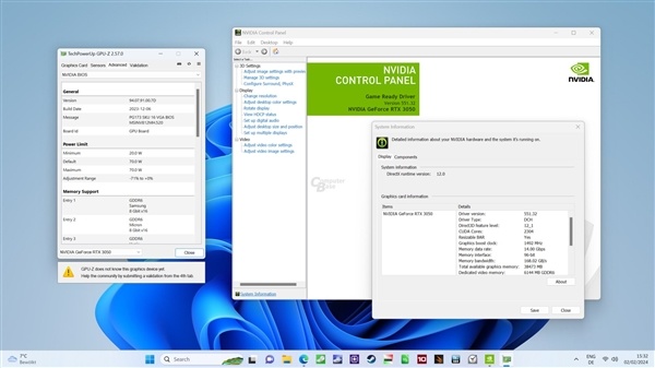 RTX 3050 6GB基于安培架构的GA107-325 GPU核心,配备2304个CUDA核心、16个光追核心,参考频率1042-1470MHz,显存只有96-bit 6GB GDDR6,整卡功耗70W。