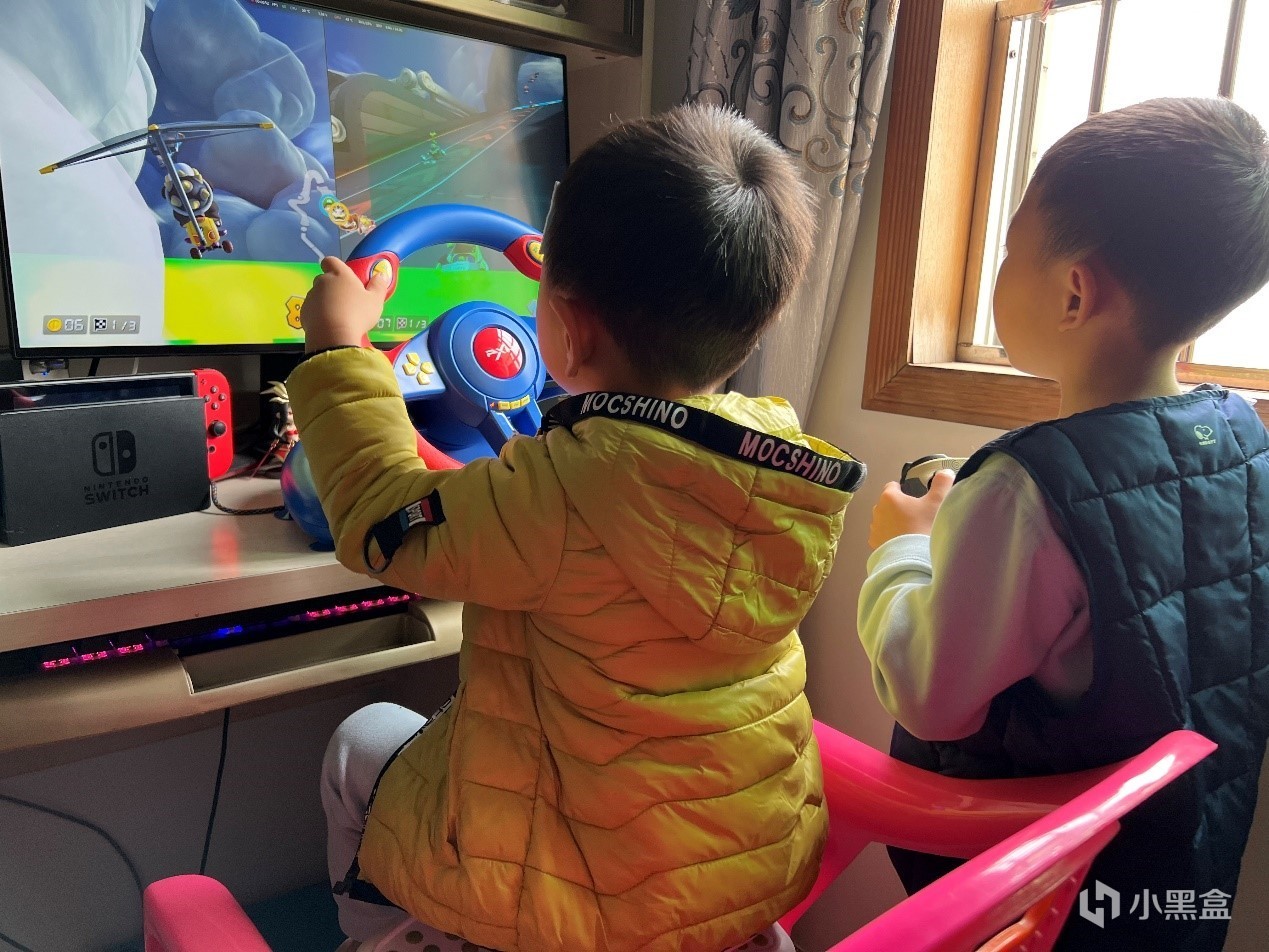 大家好,我是老吉。这不是快过年了嘛,又到了合家欢的时候,是时候把switch拿出来跟大家分享一下快乐,特别是现在的小朋友十分快速融入到游戏中,没有朋友的盒友可以自己生一个或者借一个,我这边是直接借了两个小孩一起来游玩游戏,感觉赛车还得比赛才有乐趣。