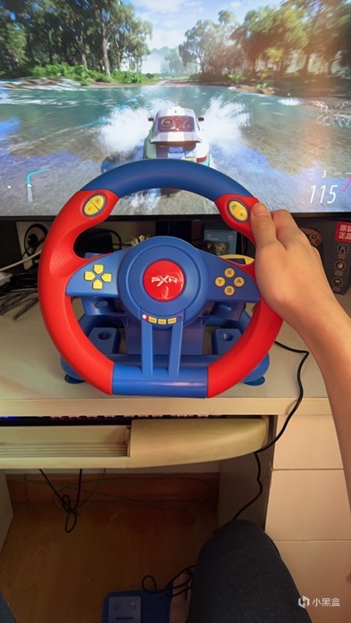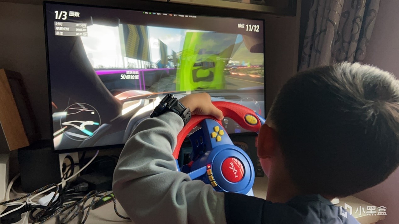 除了switch游戏外,方向盘还适配了pc端,对于电脑赛车游戏同样适用,就以地平线5作为参考,依旧是采用小孩子作为案例,不过呢,我感觉大的其实更喜欢玩pc版的,他说有点像他爸(我哥)开车的感觉,哈哈哈,看来小孩子真的很容易学会模仿并爱上,在这里也小小建议,以身作则是最好的家庭教育。