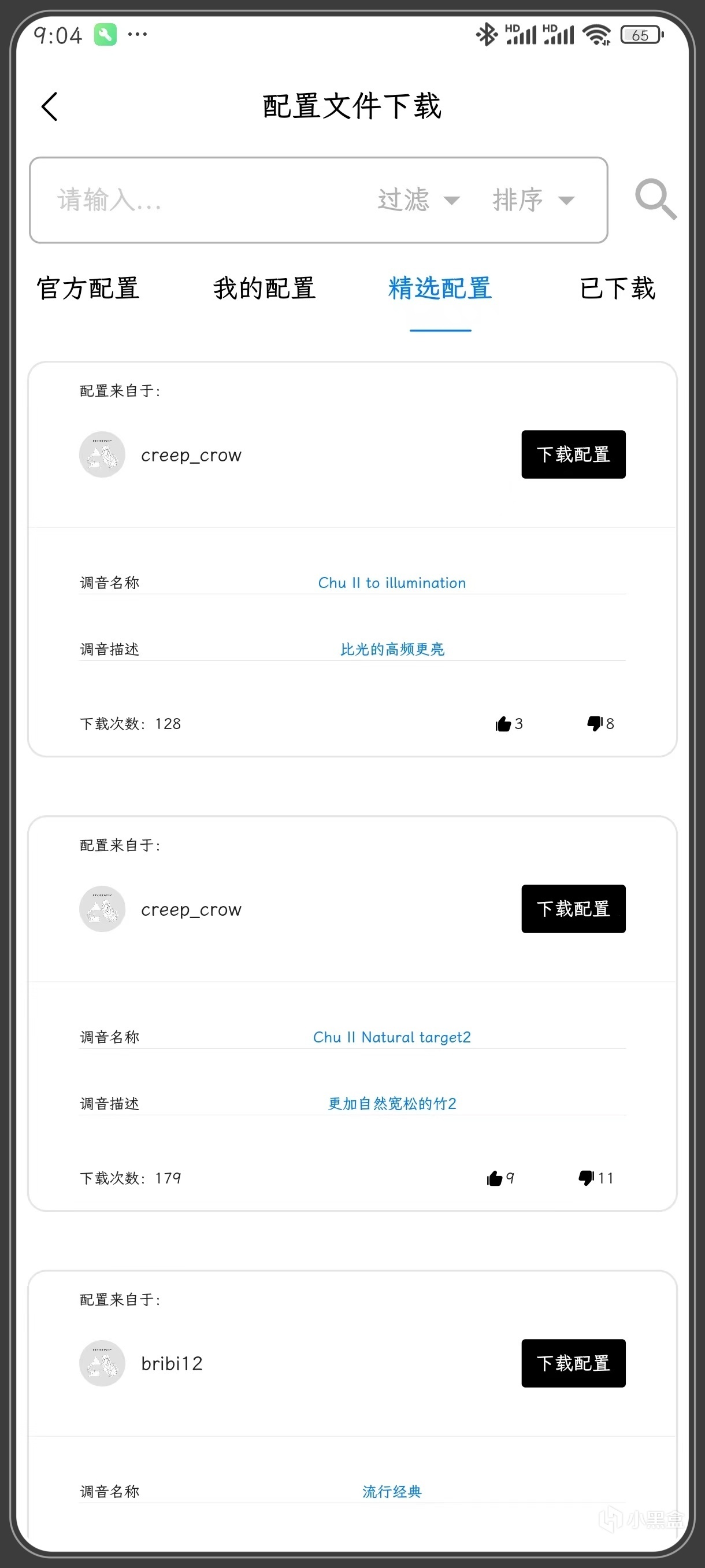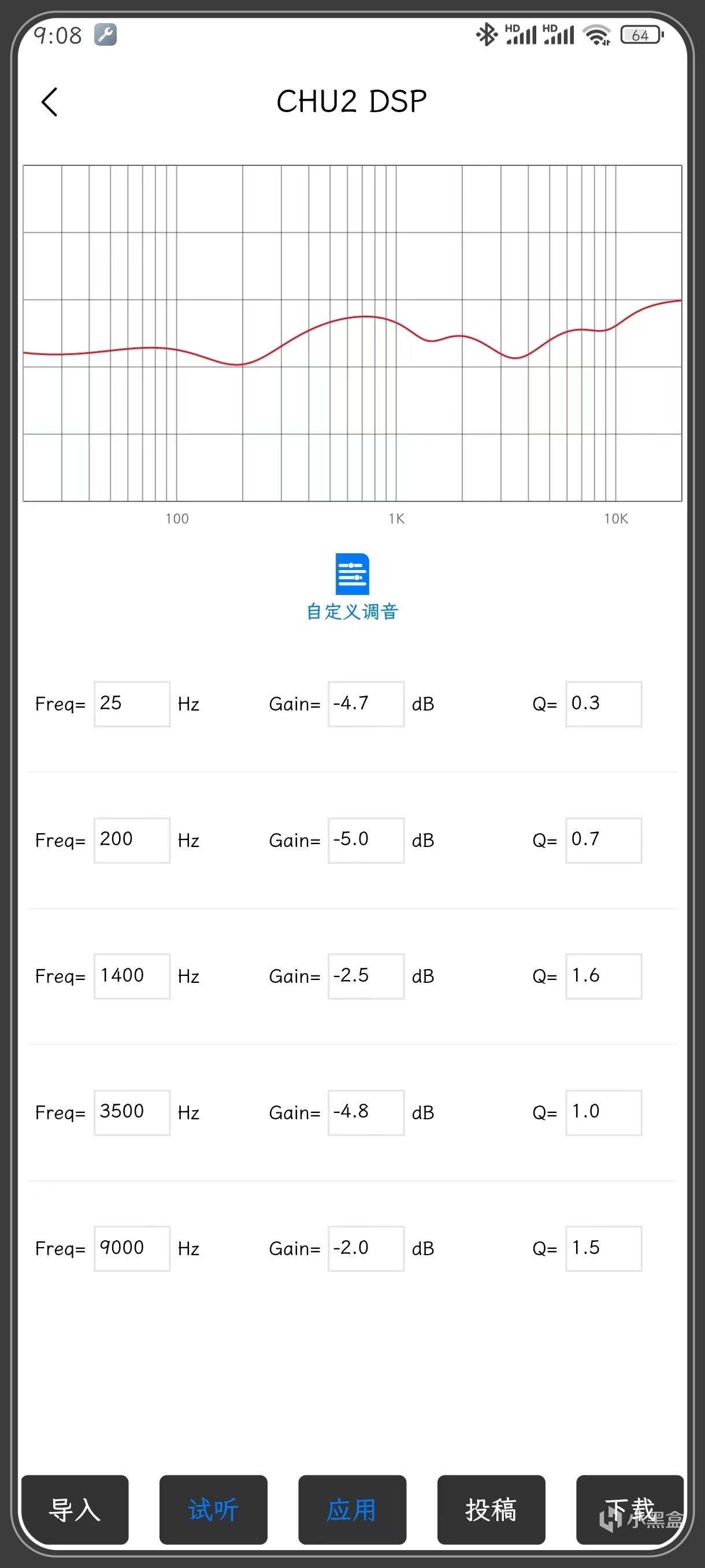 在调音空间里面,会有大佬发出其调教后的声音文件,可以直接下载并使用,这点要比其他家的DSP可用性高上不少,不过和梅一样,这边的通过竹2的DSP线连接软件,那只能看见竹2的调音部分,想来是为了防止影响自家的DSP线的销量,这点倒是无可厚非,而且这根线还是比较配竹2的,最主要的是,其本身的物理性质就比之前那个强,所以效果也比之前那根好,并且没有出现梅身上那种低频过多的现象,算是比较不错的调音了。