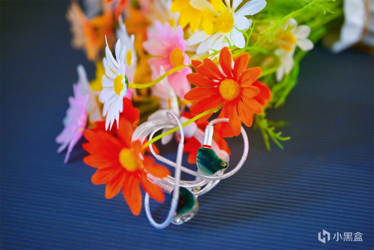 为了给到用户更个性的耳机,惊鸿有凝霜白、浓墨黑、翡翠、白+黑共四种颜色,我入手的是翡翠配色,天然原石的质感温润又细腻,晶莹剔透,戴在耳朵上,更像是一个首饰,非常好看。