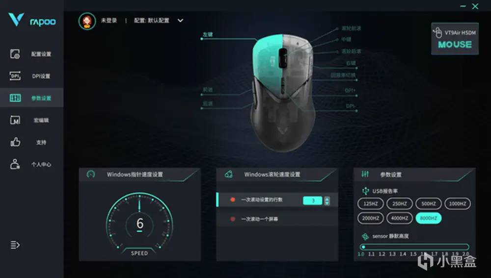 雷柏VT9Air左右按键搭配欧姆龙微动,寿命达到6000万次,持久耐用,按压手感清脆,反应灵敏,反馈也很精准。滚轮采用电竞型100万次刻度,滚动清晰准确,触感优秀,滚动舒适,表面采用橡胶材质以及防滑纹理,防滑和防误触效果也很出色。