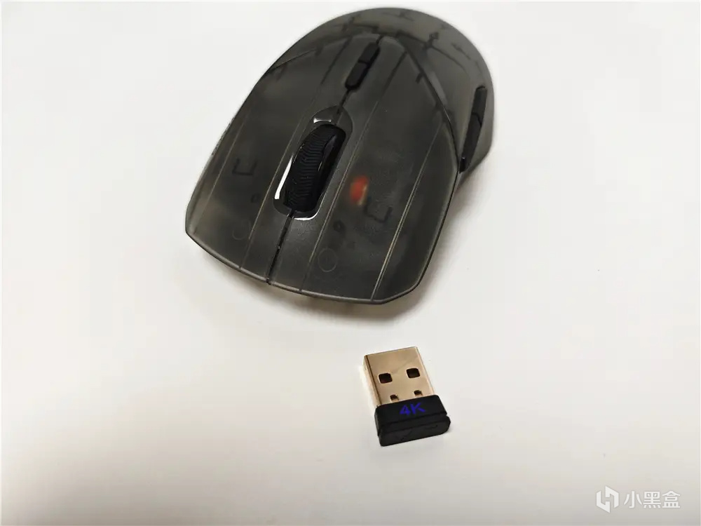 打开包装盒,取出全部配件:鼠标、电源数据线、接收器转接头、说明书、防滑贴、备用脚贴。