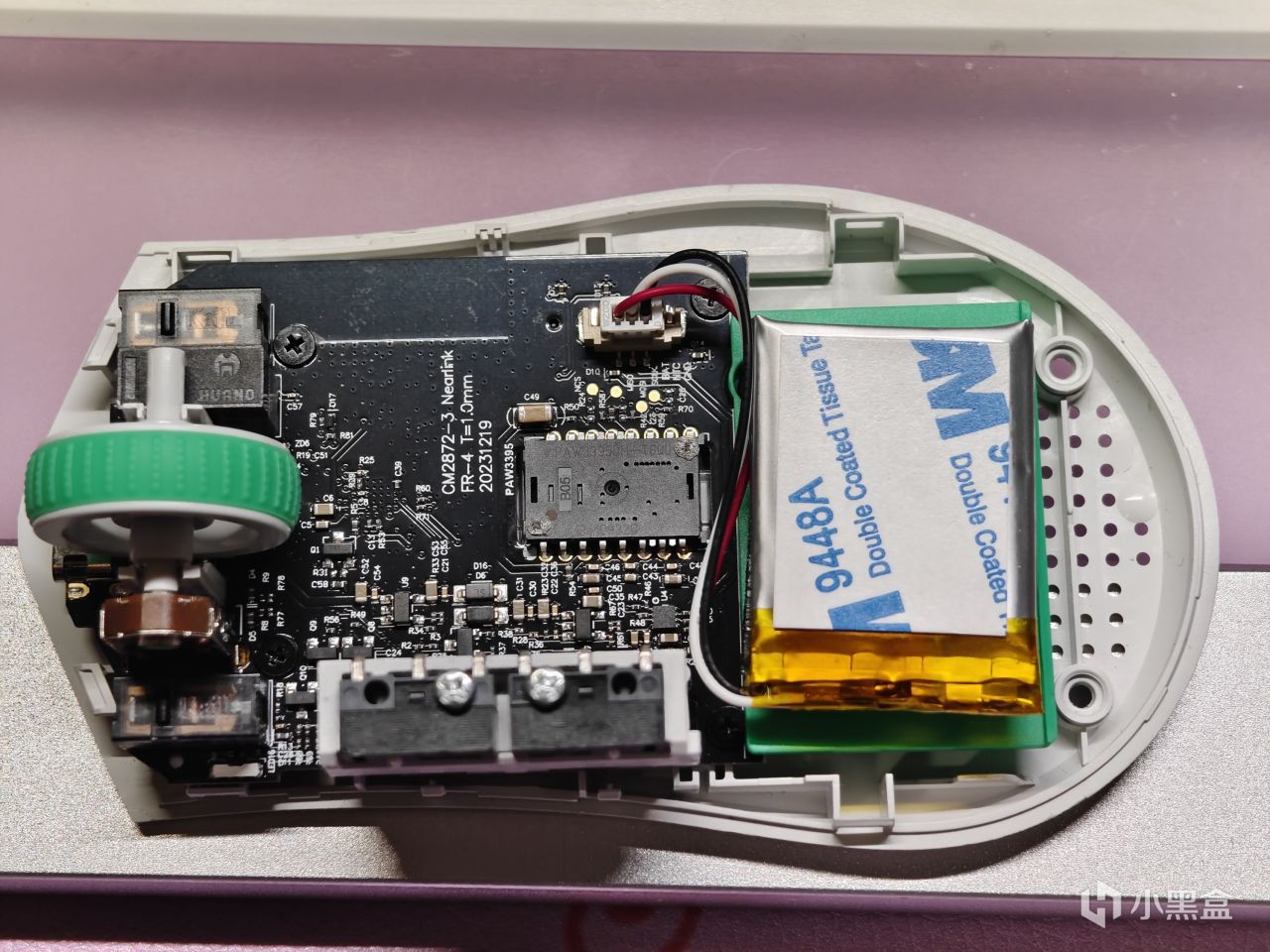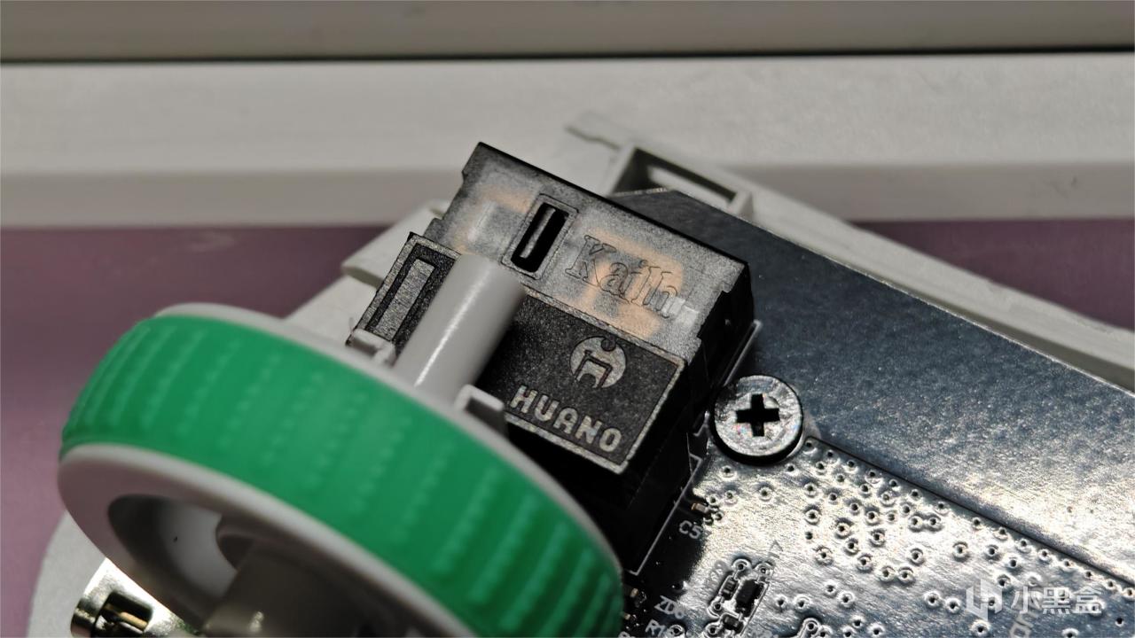 里面的微动使用的分别是凯华的黑曼巴GM8.0,滚轮使用的是华诺红点,以及侧面使用的是华诺灰点。手感都还行,唯一的问题是凯华这个熟悉的黑曼巴虽然手感确实清脆,但是触发力度比较大,长时间打游戏会有“锻炼手指”的奇效。