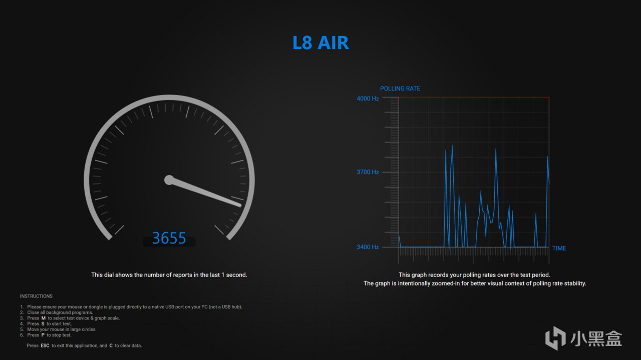 顺带一提,L8 Air和MAX都用的Nano接收器,支持4KHz,有线可以做到8KHz。这个4K Nano接收器体积很小,不需要额外拓展,直接用
