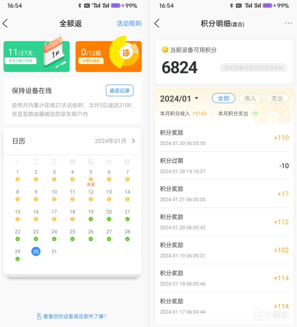 演示设备为京东云无线宝雅典娜64G+京东云无线宝亚瑟,套餐为电信5折的5G畅享129套餐(政企套餐),目前不外接硬盘的情况下每天收益150-200分之间,倒也能基本打回套餐的费用。