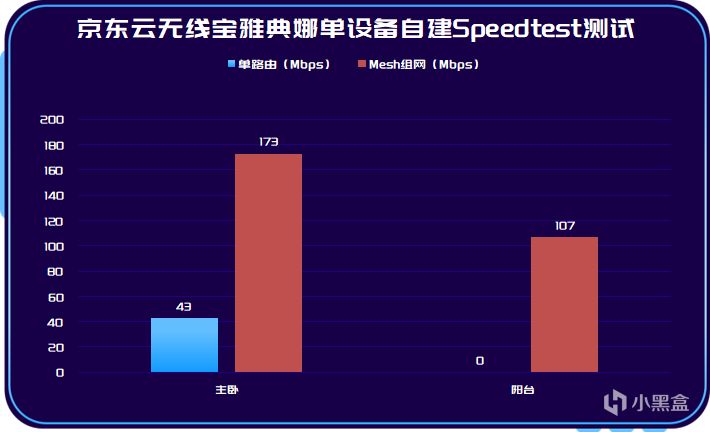 ▼放大一下局部内容,之前的主卧属于翻个身就没信号,网络连接不稳定的情况,现在已经可以稳定获得173Mbps的访问速率了,以前主卧刷个短视频都卡;阳台位置压根就连不上,现在也能获得107Mbps的稳定连接了。