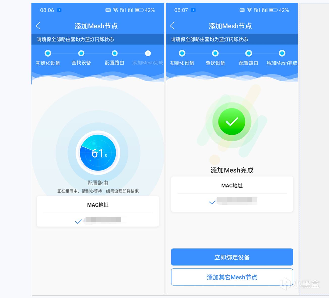 ▼不一会儿就能连接成功,子Mesh节点接入网络后可能会进行自动升级,让子弹飞一会儿就好了。