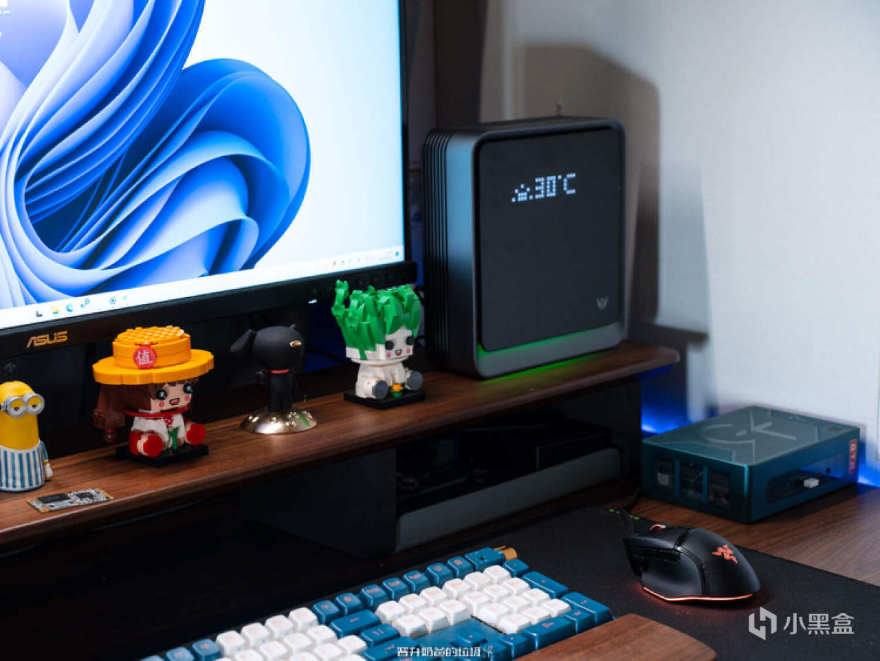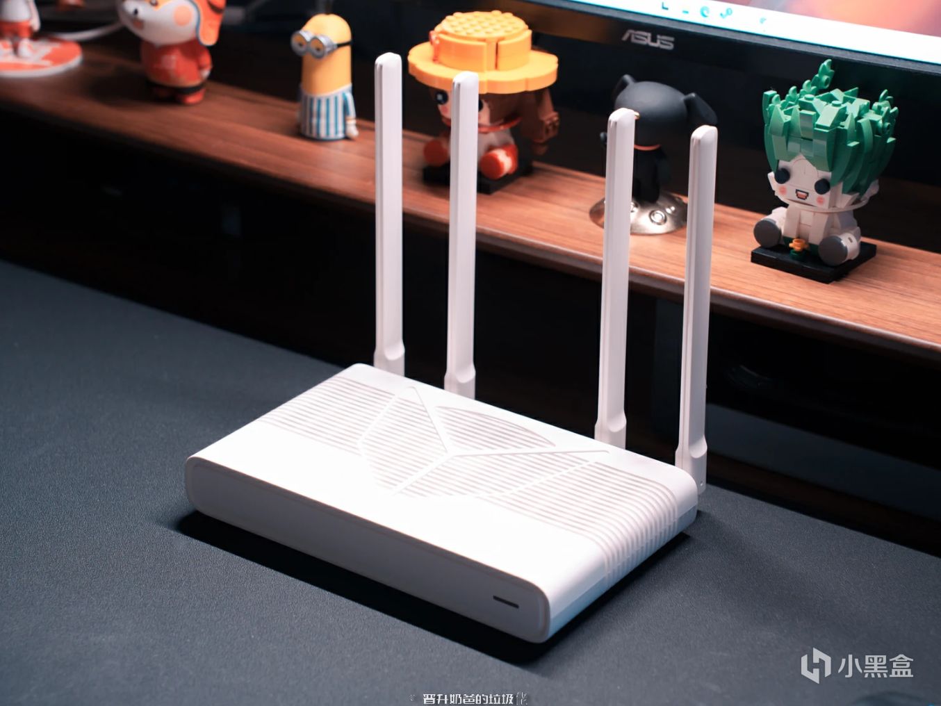 ▼雅典娜采用了从正面看上去有点小方的设计,四个角采用了弧度处理,让设备的造型看上去圆滑且没有棱角,正面覆盖的黑色面板与黑灰色的边框形成了层次感,面板上设计有一块LED点阵屏幕,可以显示时间、上传速度、前一天获得的积分、天气以及下载速度等其他数据,同时面板下方还有展示路由运行状态的指示灯,雅典娜作为桌上摆件的效果也很不错。