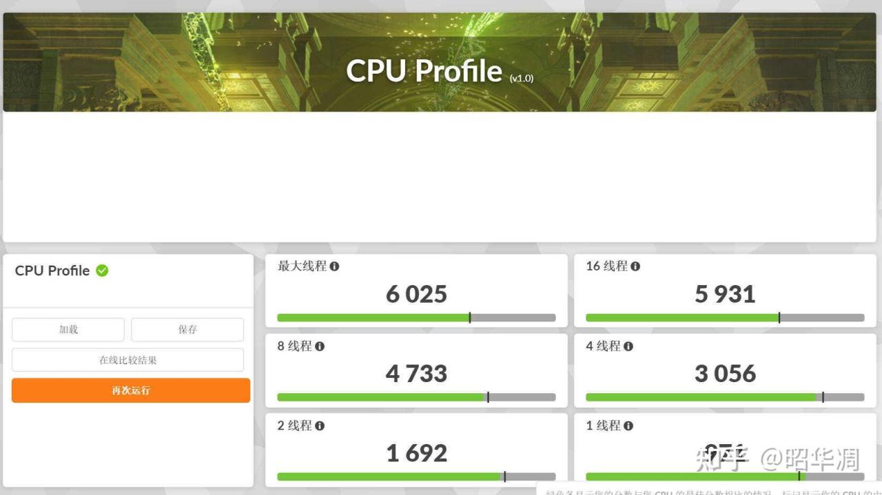 测试结果:最大线程 6025、单线程 971、双线程 1692、4 线程 3056、8 线程 4733、16 线程 5931。