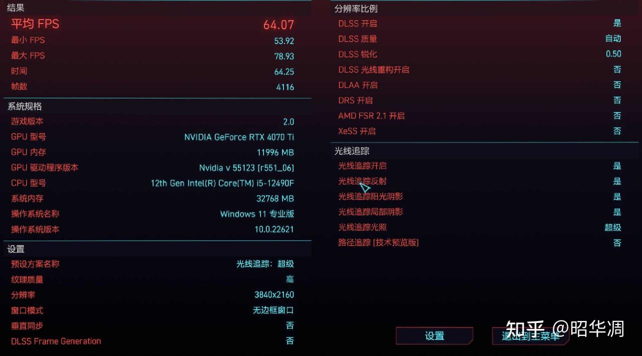▼最后用赛博朋克 2.0 作为结尾吧,在 4K分辨率 / 超级光追模式下,主机能提供最大 78.93、最小53.92、平均 64.07FPS,基本满足流畅与画质的需求,使用高刷显示器的朋友可以考虑调整画质实现更顺滑的游戏体验。