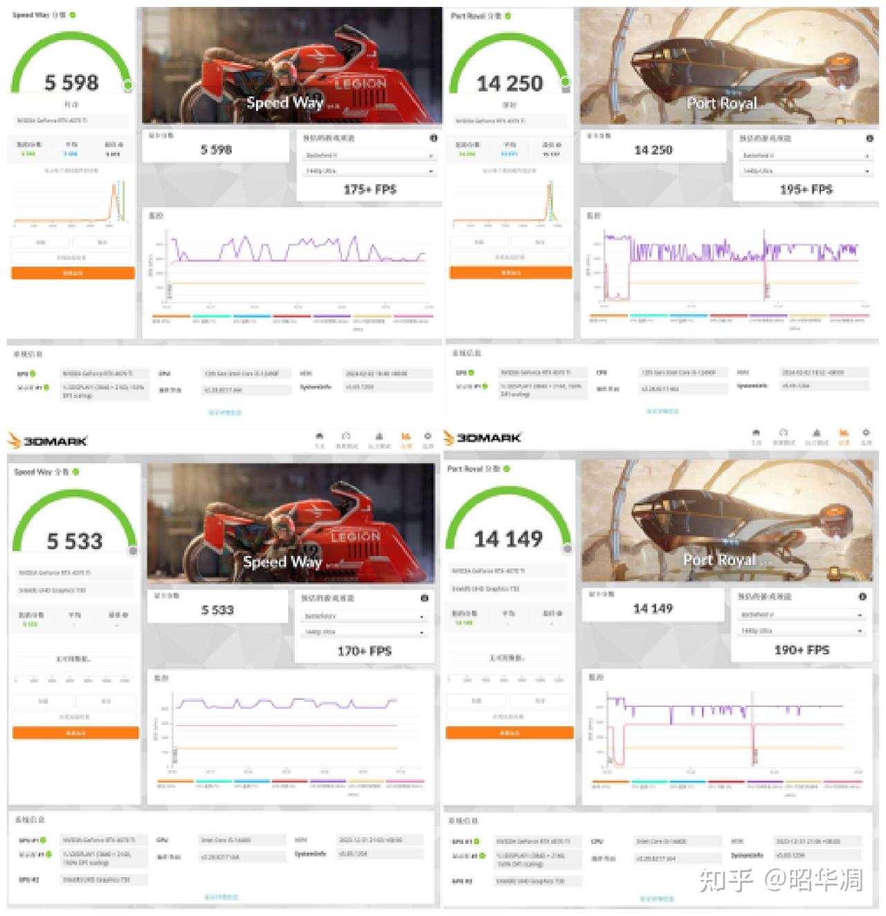 Speed Way 测试:12490F 显卡得分 5598;14400显卡得分 5533