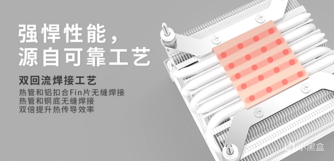 可以说在这个价位段,能够满足ITX机箱高度限制(<53mm),使用下压式的风冷散热器,采用9cm薄扇,还是回流焊工艺的CPU散热器的确是不多见。