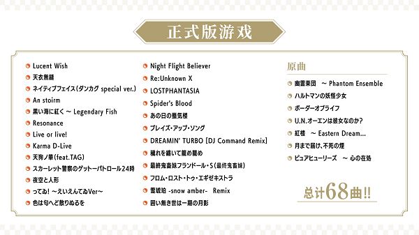 收录了东方Project含原曲在内的共68首热门乐曲。