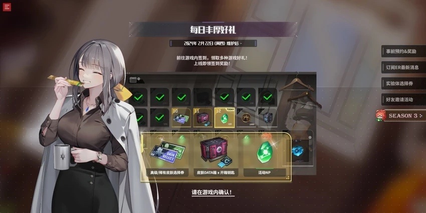 3. 每日丰厚好礼:2024年2月15日维护后,前往游戏内签到簿,即可签到领取多重好礼